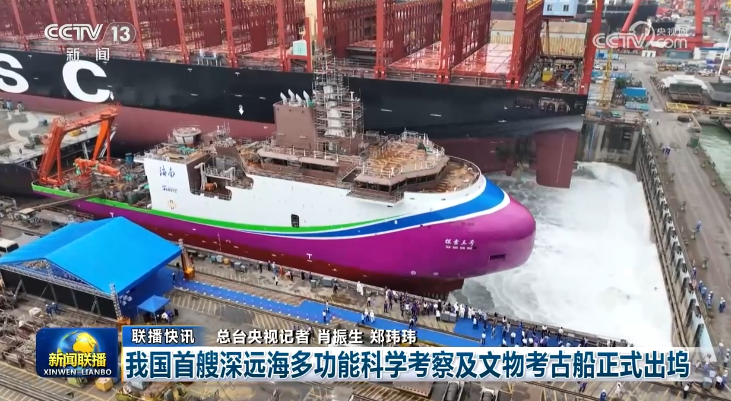 (4)我國首艘深遠海多功能科學考察及文物考古船正式出塢;