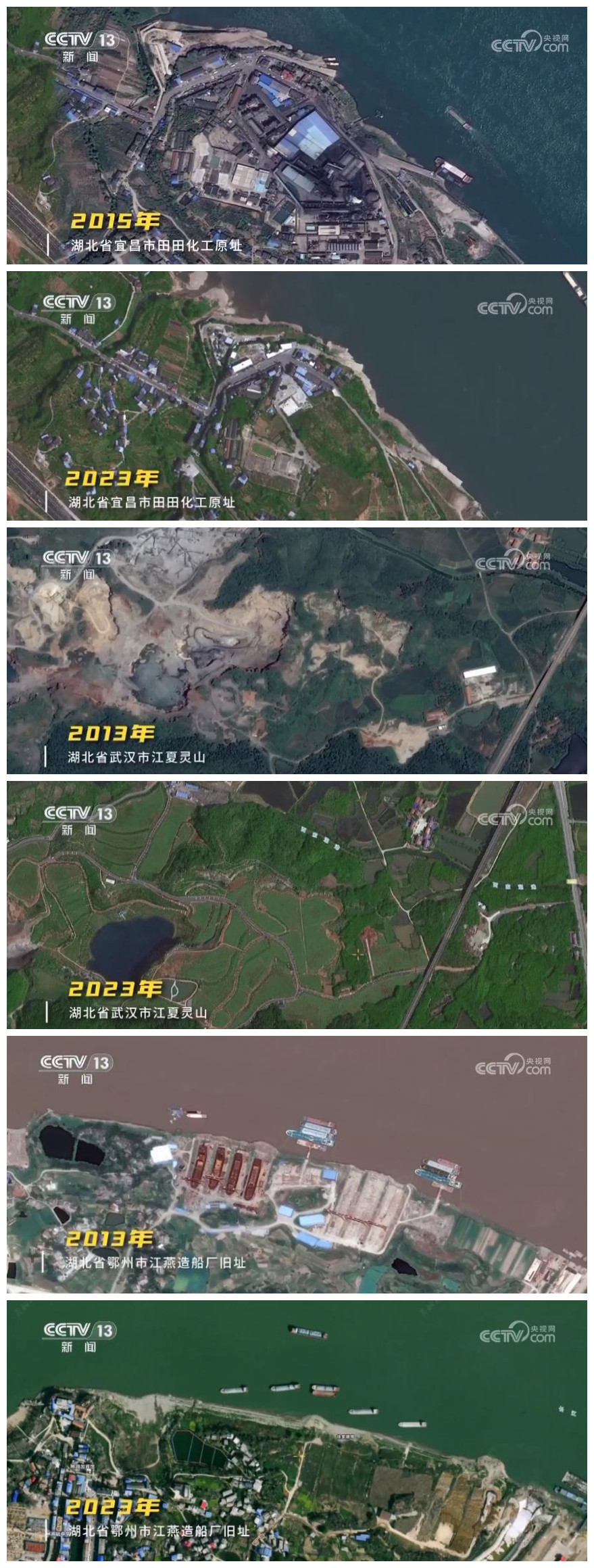 湖北是長江干線流經里程最長的省份,這是遙感衞星記錄下的湖北1061公里長江岸線綠色蝶變的景象。在位於湖北宜昌三峽大壩的左岸壩首,一棵近十米高的珍稀楠木高大挺拔、青翠茂密。2018年4月,習近平總書記考察三峽工程時,揮鍬培土,種下了這棵樹。長江的保護和發展,習近平總書記始終牽掛於心。他走遍了長江沿線11省市,4次召開座談會,為長江經濟帶高質量發展把脈定向。他明確提出“把修復長江生態環境擺在壓倒性位置,共抓大保護,不搞大開發”,強調“推動長江經濟帶高質量發展,根本上依賴於長江流域高質量的生態環境”。