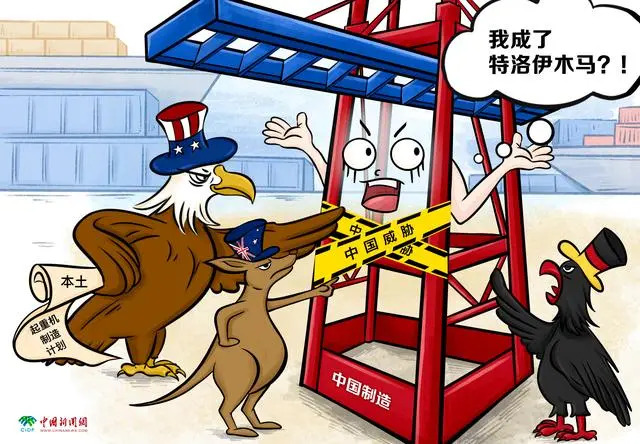 漫畫:中國起重機成“特洛伊木馬”?(圖片來源:中國新聞網)