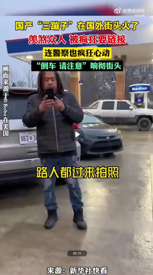 一位遠嫁美國的中國兒媳,委託朋友從國內購買了一輛電動三輪車,漂洋過海送給遠在美國的公公。炫酷的燈光、高調的音樂,搭配着“倒車請注意”的提示音,讓國產“三蹦子”一躍成為美國街坊爭相打聽的“炸街”神器。