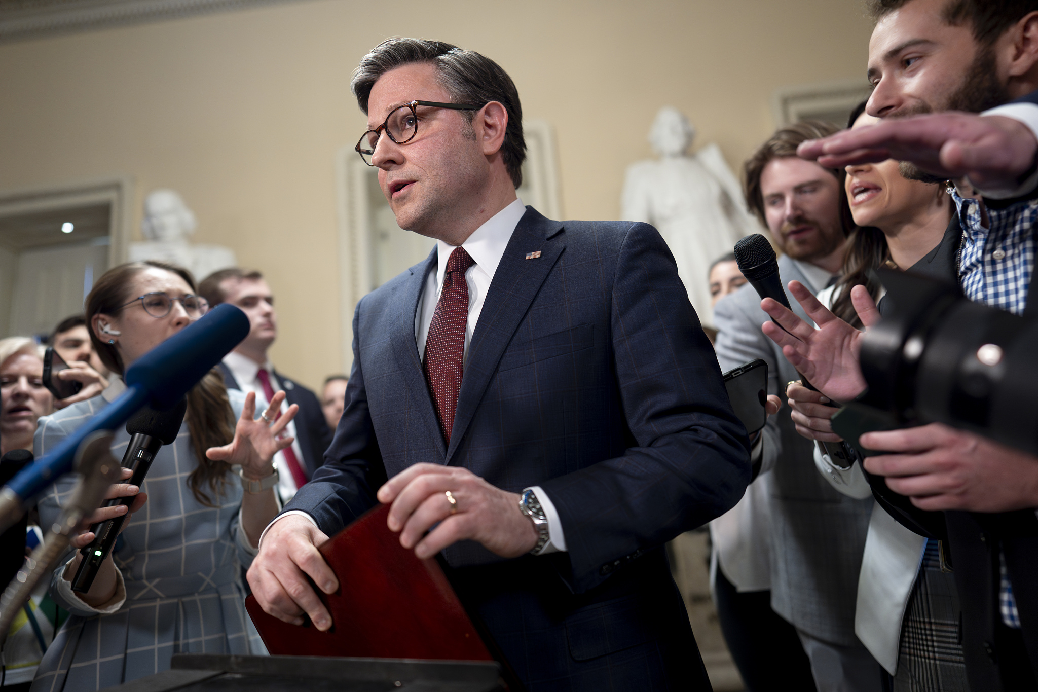 當地時間4月20日,美國眾議院議長約翰遜接受美媒採訪 圖源:視覺中國