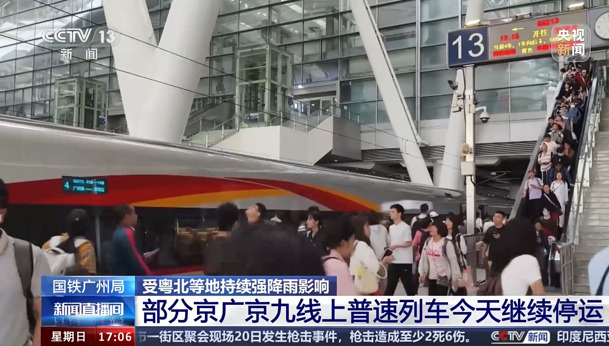 記者從廣鐵集團瞭解到:受粵北、湘南等地持續強降雨影響,部分途經京廣京九鐵路普速列車今天(4月21日)繼續停運。