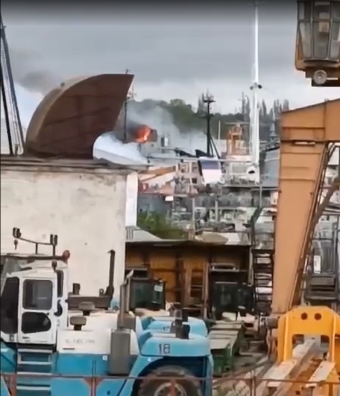 (觀察者網訊)據法新社、烏克蘭真理報等媒體報道,當地時間21日,烏克蘭國防部稱,烏海軍在克里米亞襲擊了俄軍1913年下水的“公社號(Коммуна)”潛艇救援船,並導致其癱瘓。俄方則表示成功攔截反艦導彈,但“掉落碎片引發火災”,火災很快被撲滅。