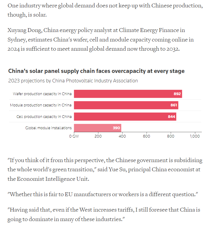 西方炒作中國產能過剩,但“關税壁壘救不了歐美光伏”