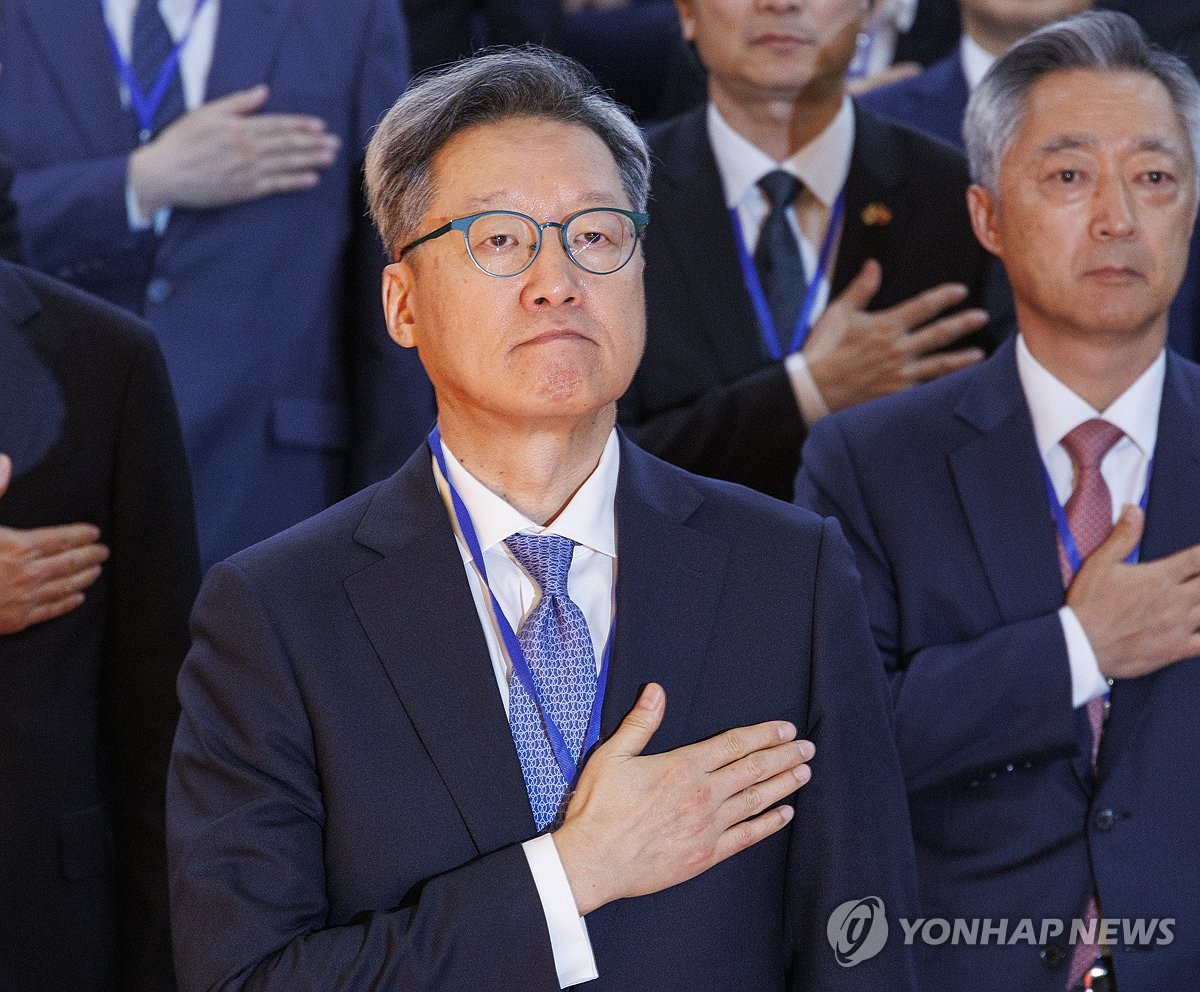 當地時間4月22日,在韓國外交部,韓國駐華大使鄭在浩出席2024年駐外外交代表會議。(圖源:韓聯社)