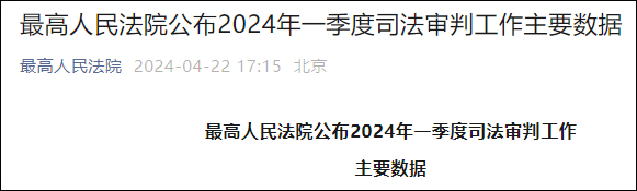 據微信公眾號“最高人民法院”4月22日消息,最高人民法院公佈2024年一季度司法審判工作主要數據。