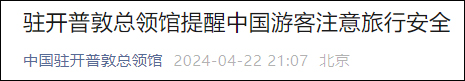 駐開普敦總領館提醒領區中國遊客和廣大僑胞提高安全意識,特別是從事風險較高的户外極限旅行項目時,務必做好安全防範措施,嚴防意外,確保人身安全。