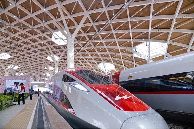 雅萬高鐵高速動車組停靠在站台上