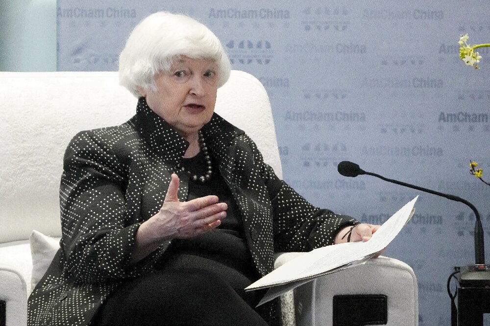 2024年4月5日,廣東廣州,美國財政部長珍妮特-耶倫參加中國美國商會爐邊座談會