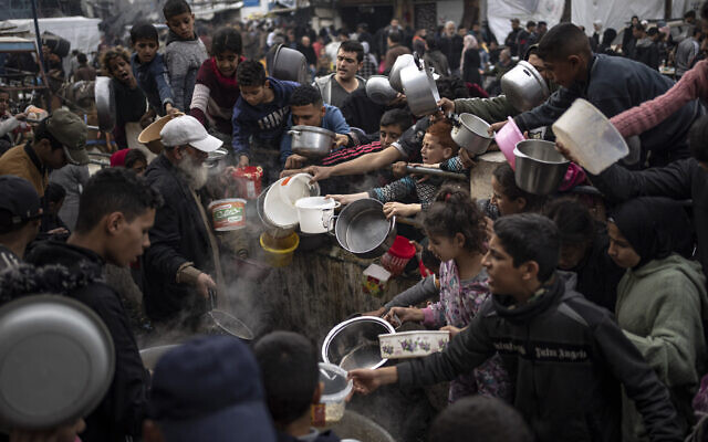 2023年12月21日,加沙地區,巴勒斯坦人為一頓飯排隊(圖片來源:外媒)