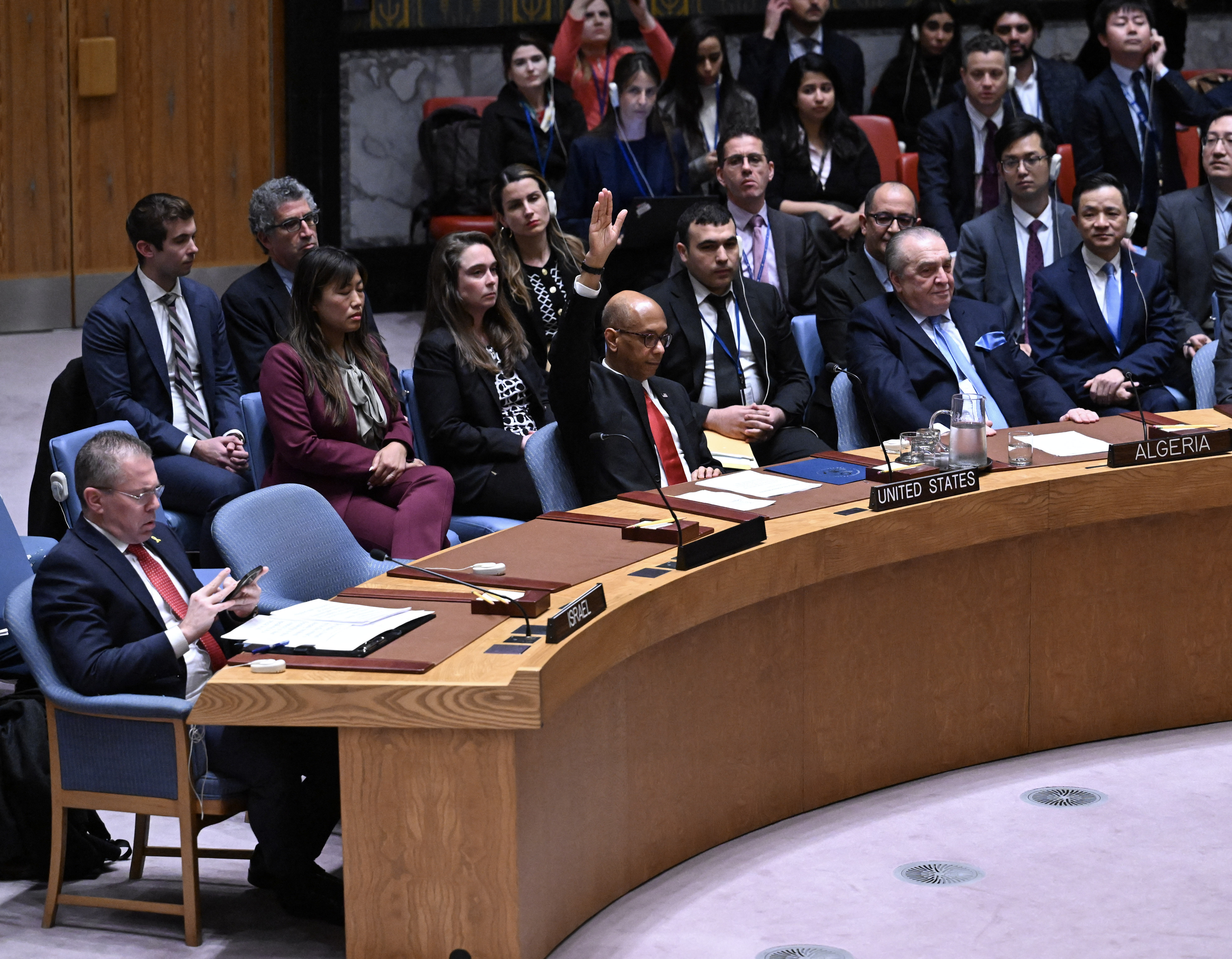當地時間2024年4月18日,聯合國安理會就接納巴勒斯坦成為聯合國正式會員國進行表決。由於美國作為安理會常任理事國反對,該決議草案被一票否決(圖片來源:IC photo)