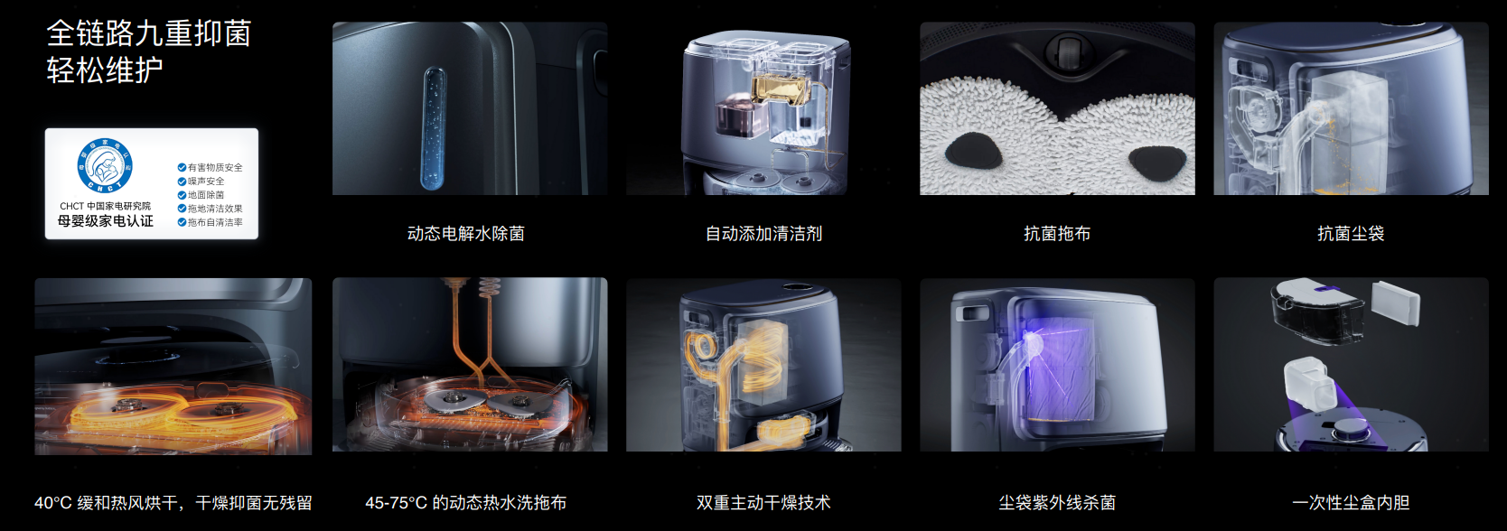全智能自清潔基站,120天集塵託管,電解水動態抑菌