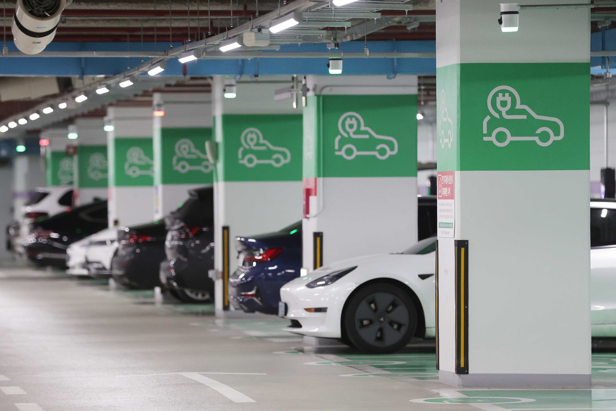 當地時間2月6日,韓國首爾,某電動汽車停車場 圖自視覺中國