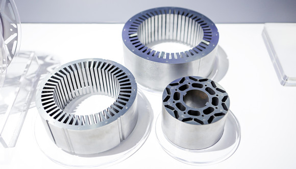 使用寶鋼股份無取向硅鋼製作的新能源汽車驅動電機定子和轉子,圖片來源:寶鋼股份