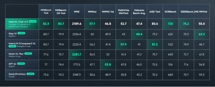 本次“日日新5.0”另一大核心指標就是多模態能力,商湯多模態大模型的圖文感知能力達到全球領先水平,在多模態大模型權威綜合基準測試MMBench中綜合得分排名首位,在多個知名多模態榜單MathVista,AI2D,ChartQA,TextVQA,DocVQA,MMMU取得領先成績。