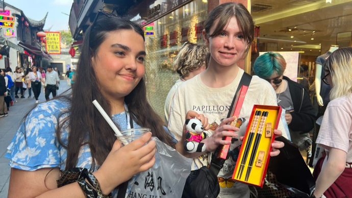 4月23日,來自美國馬斯卡廷中學的32名學生來上海蔘觀交流,首站便是極富上海傳統特色的豫園(上觀新聞)