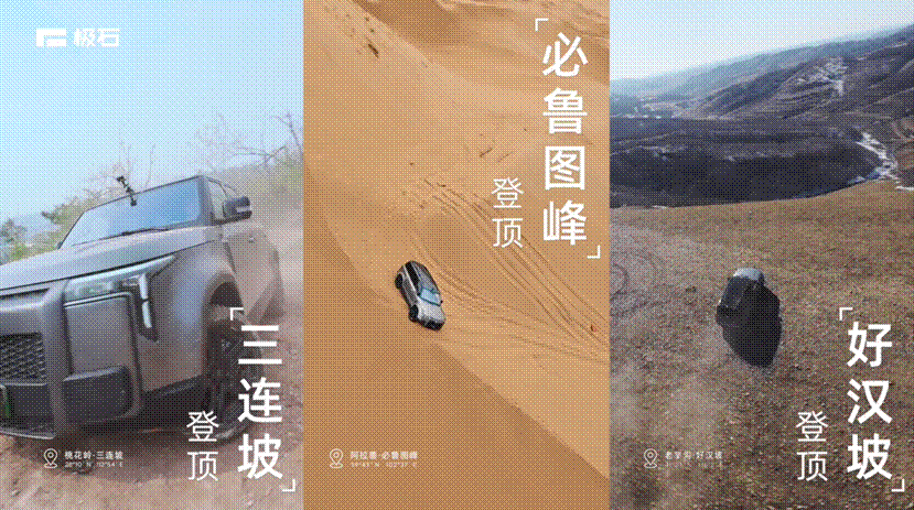 穿行在山野之間,極石01就是一台具有全地形穿越能力的越野SUV。全鋁合金底盤、前雙叉臂及後H型多連桿懸架勝任崎嶇的郊野路況,標配的雙電機全時四驅則確保了充足的動力儲備。同級最大的56kWh電池組和70L超大容積油箱帶來1338公里超長油電續航,從容解決里程焦慮。面對複雜多變的野外環境,極石01搭載沙地、涉水、雪地、泥地及山地等五種專業穿越模式,陪伴用户走最難的路,看最美的風景,去最遠的遠方。不久前,極石01在零改裝情況下一舉征服有着“沙漠珠峯”美譽的阿拉善必魯圖峯,併成功登頂老掌溝好漢坡和長沙三連坡,硬核詮釋經得起實戰考驗的全地形實力。