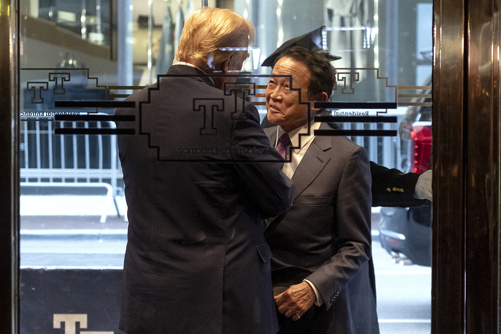 路透社稱,83歲的麻生太郎23日晚間進入曼哈頓的特朗普大廈,與特朗普進行約一個小時的會面。特朗普在陪同麻生進入大廈時對媒體表示:“他(麻生)是一位在日本國內外都備受尊敬的人,我很喜歡他。”