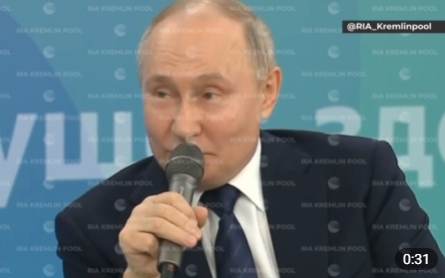 當地時間1月25日,普京在加里寧格勒向俄大學生講話 截圖自俄新社