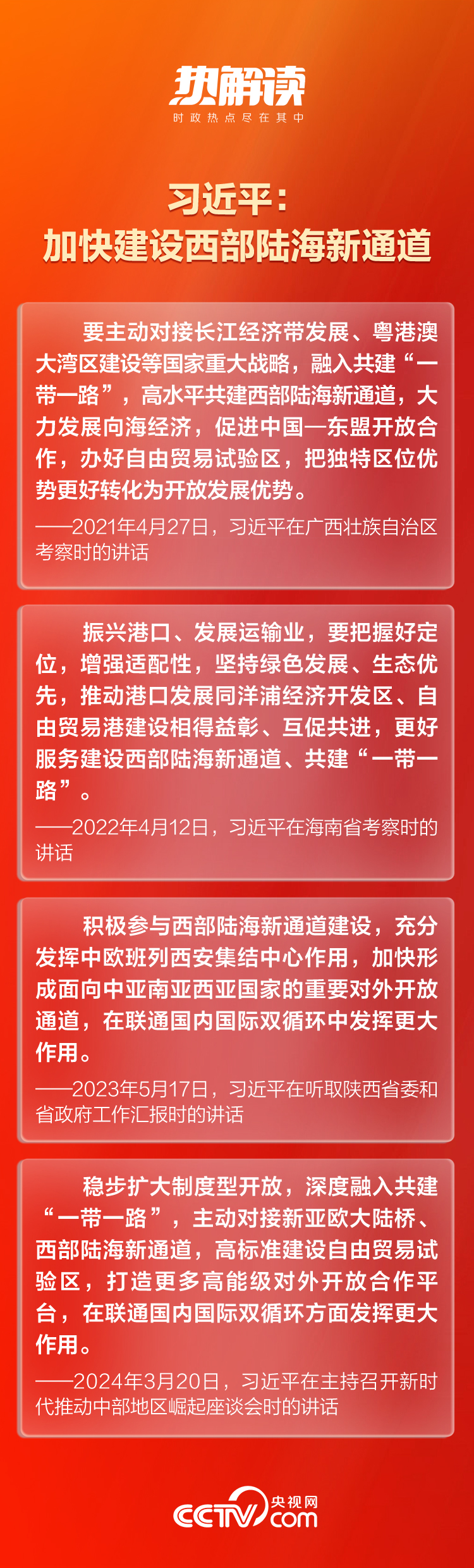 “加快陸海新通道、空中絲綢之路建設”“高水平共建西部陸海新通道”“更好服務建設西部陸海新通道”“主動對接西部陸海新通道”……