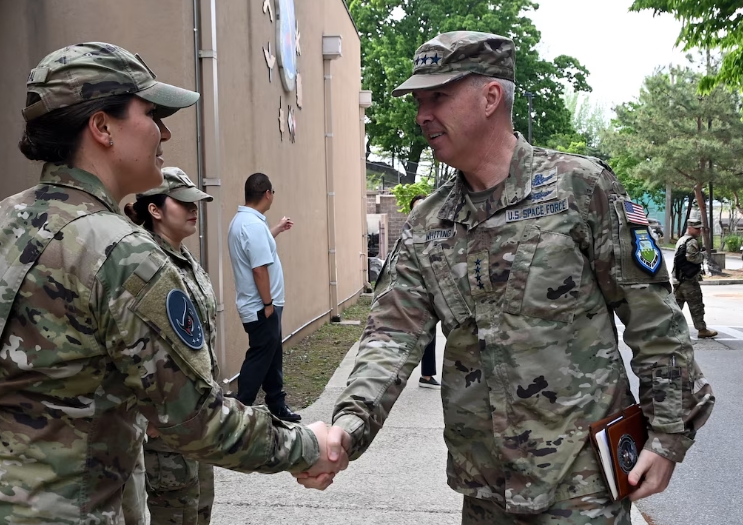 史蒂芬·懷廷(右)21日至22日訪問韓國,圖自美太空司令部網站