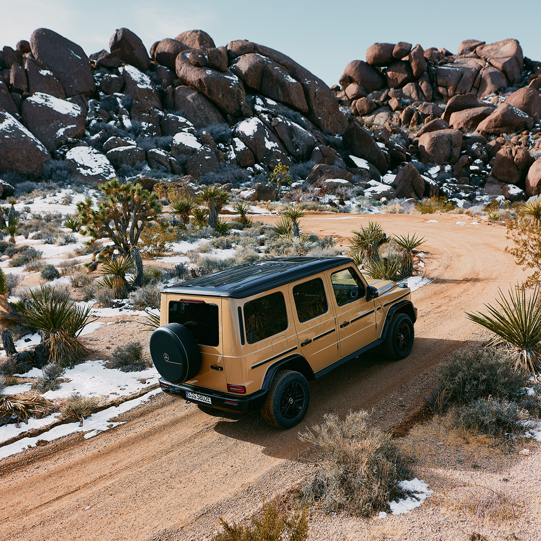 正式亮相前,純電G級還經歷了家族嚴苛的越野路況測試。和每一代G級越野車一樣,純電G級的原型測試車經歷了336次奧地利舍克爾山的攀登測試,每次測試須穿越這段海拔1445m、坡度高達60%、側傾坡度達40%的極限户外試煉場。不僅如此,原型測試車還穿越了危險重重的佩皮尼昂大平原,挑戰了瑞典的極端嚴寒,並以可靠表現證明其家族純粹血統。