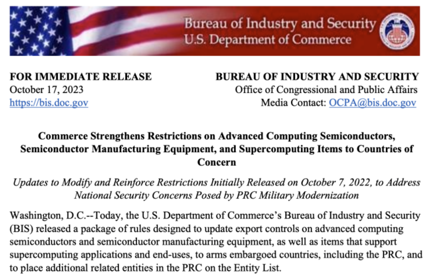 美國對21個國家提出了芯片製造設備的許可要求,並擴大了禁止進入這些國家的設備清單。此舉旨在限制中國的14納米以下先進芯片的製造能力。(圖源:美國商務部)