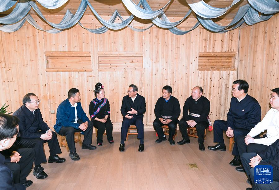4月24日,中共中央政治局常委、國務院總理李強在貴州調研。這是李強在台江縣台拱街道紅陽村聽取鄉村體育產業、文旅產業發展情況彙報。新華社記者 饒愛民 攝