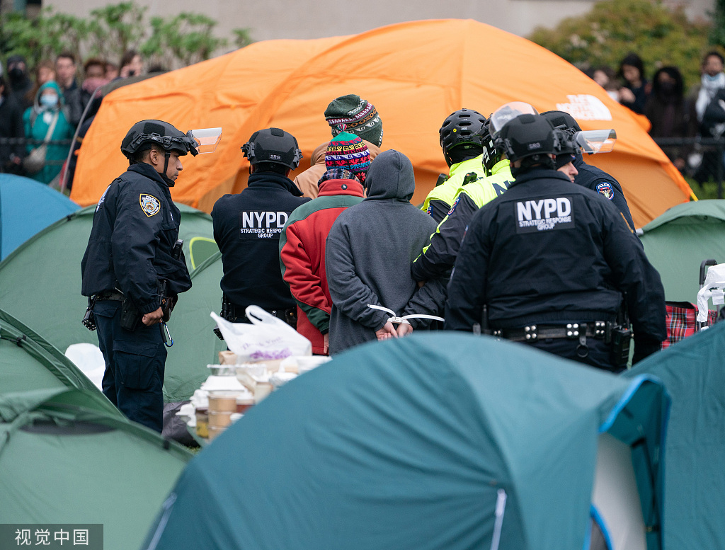4月18日,美國紐約警方在哥倫比亞大學逮捕抗議者 圖源:視覺中國