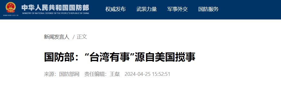 據國防部網站消息,4月25日下午,國防部舉行例行記者會,國防部新聞局局長、國防部新聞發言人吳謙大校答記者問。