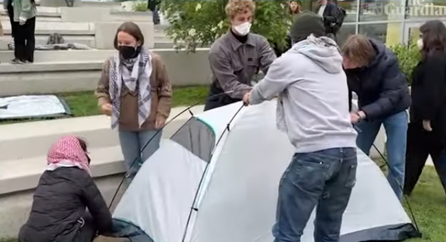 當地時間週三,法國最負盛名的政治學院巴黎政治學院(Sciences Po)的反戰學生抗議者也開始在大學校園內搭建帳篷,聲援美國高校抗議行動。他們要求學院切斷與以色列大學的聯繫,停止“鎮壓”親巴勒斯坦的聲音。