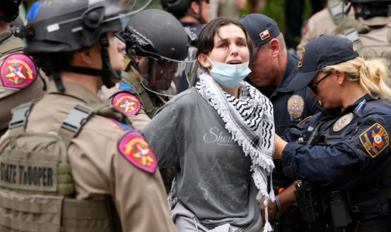 德克薩斯大學奧斯汀分校一名女性在抗議活動中被捕 圖自美聯社