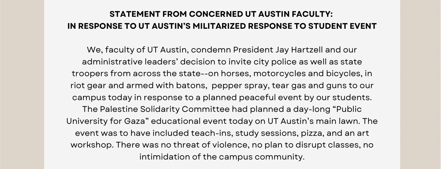 得克薩斯大學奧斯汀分校教職員工發佈聯合聲明 節選