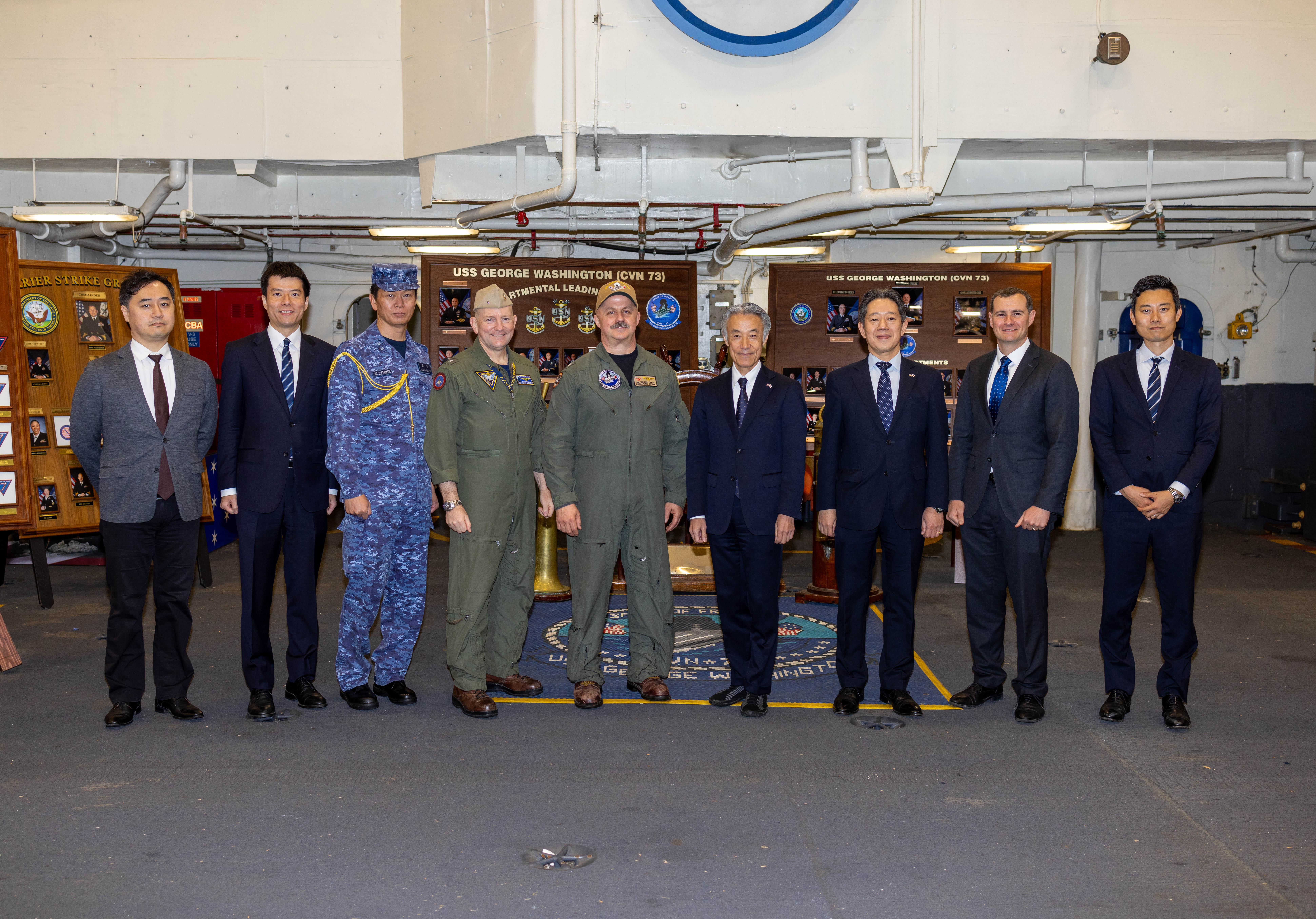 根據美國國防可視信息分發系統(DVIDS)網站顯示,在“華盛頓”啓航前一天的4月24日,日本駐美大使山田重夫一行人還前往諾福克基地,登艦參觀了即將出發的“華盛頓”號,並與“華盛頓”號航母和美國海軍第10航母打擊大隊的高級官員進行了會面。
