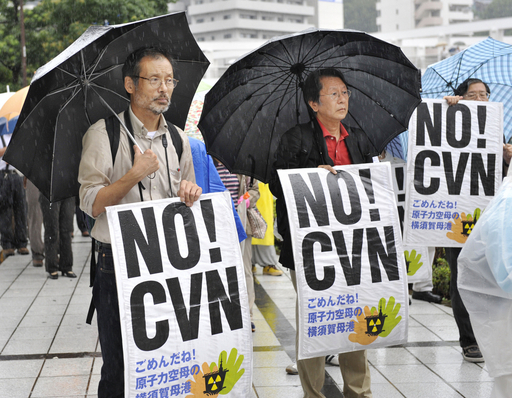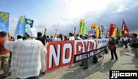 作為首艘以橫須賀為母港的美國核動力航母,“華盛頓”在抵達日本前後引起了大量抗議活動 圖片來源:時事新聞/APnews