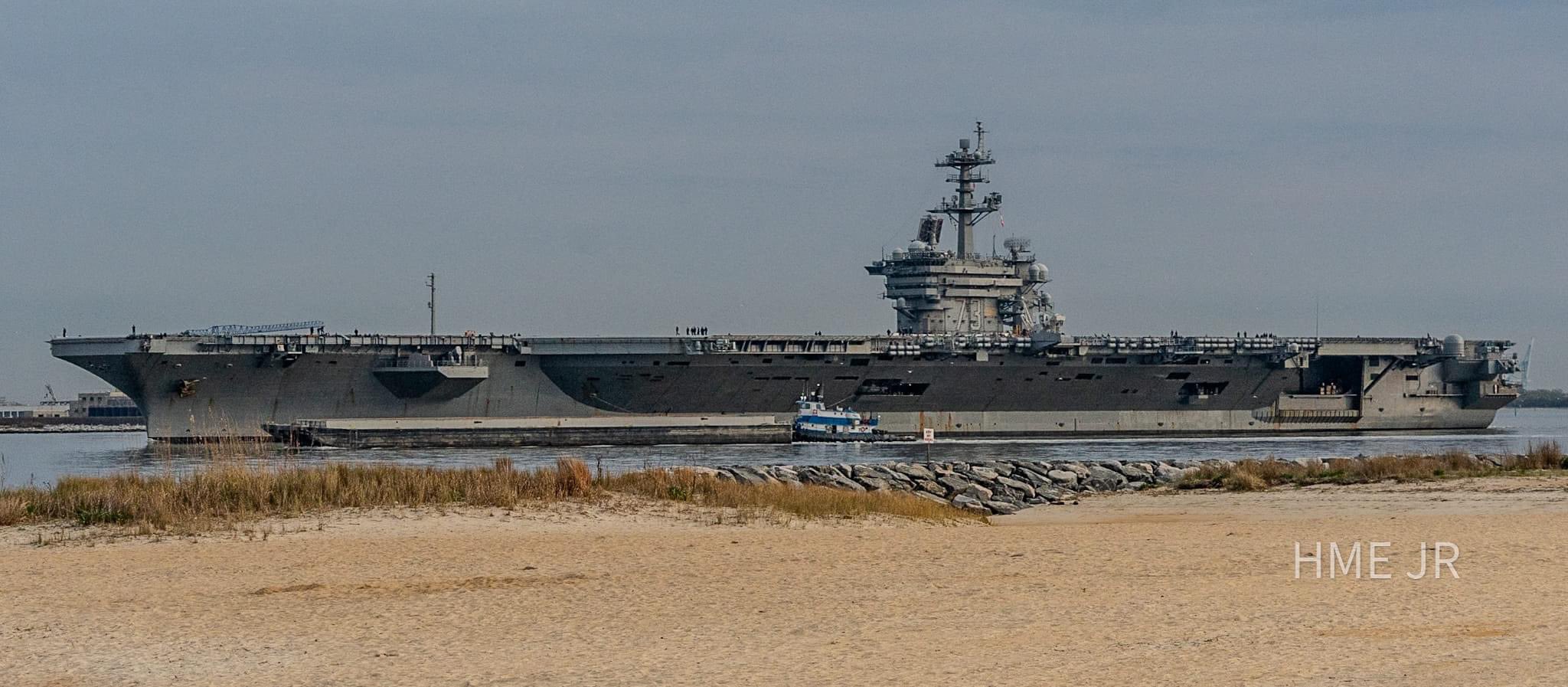 4月12日,正在進入諾福克基地的“華盛頓”號航母 圖片來源:社交媒體X(原“推特”)賬號@WarshipCam