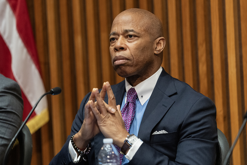 當地時間2024年1月3日,美國紐約,紐約市長埃裏克·亞當斯出席宣佈年終全市犯罪統計數據的會議。(圖源:視覺中國)