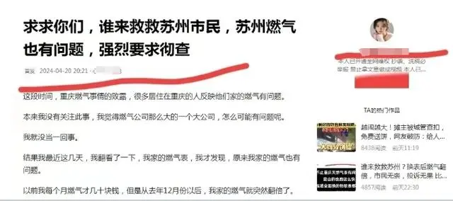 4月20日晚上8點多,她在網絡發表文章《求求你們,誰來救救蘇州市民,蘇州燃氣也有問題,強烈要求徹查》。