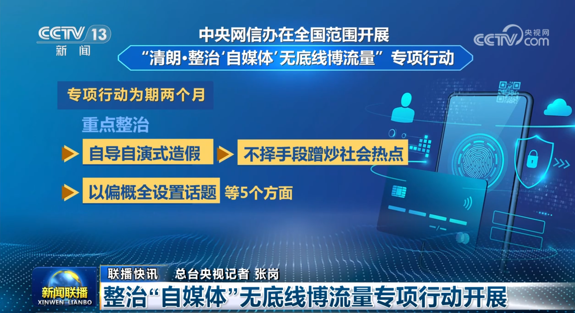 (6)整治“自媒體”無底線博流量專項行動開展;