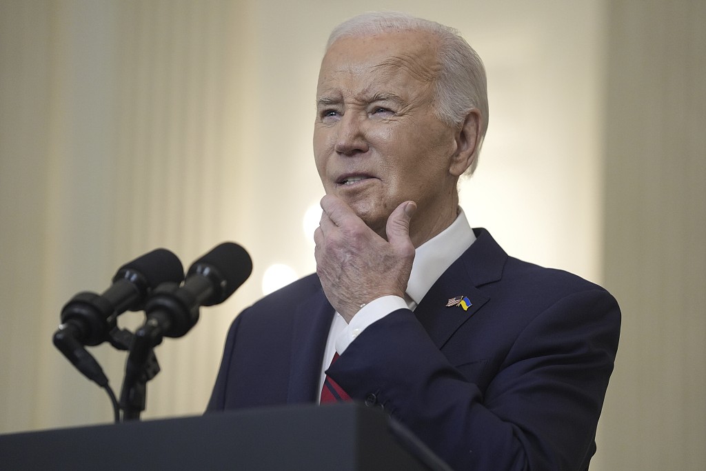 當地時間2024年4月24日,美國華盛頓特區,美國總統拜登在白宮國宴廳簽署一項950億美元的對外援助計劃之前發表講話。(圖源:視覺中國)
