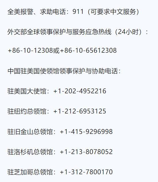 我駐美使館提醒:在美中國留學生,如遇危險及時聯繫