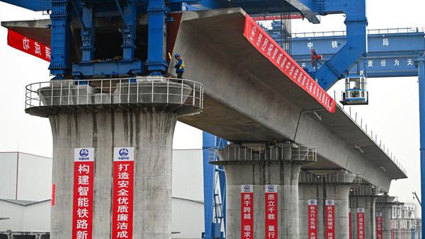 △2024年3月1日,成渝中線高鐵首孔箱梁架設完成。(圖/視覺中國)