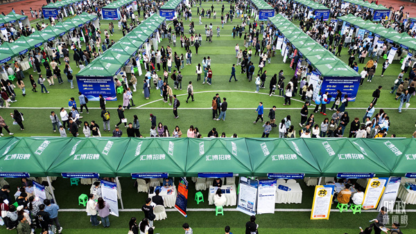 △2024年4月9日,成渝地區雙城經濟圈現場招聘會在重慶工商大學舉行,748家企業提供上萬崗位。(圖/視覺中國)