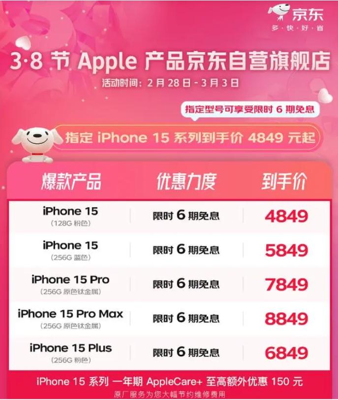 iPhone今年多次降價促銷。3·8婦女節促銷活動期間,iPhone 15大降價,有平台直降超千元。