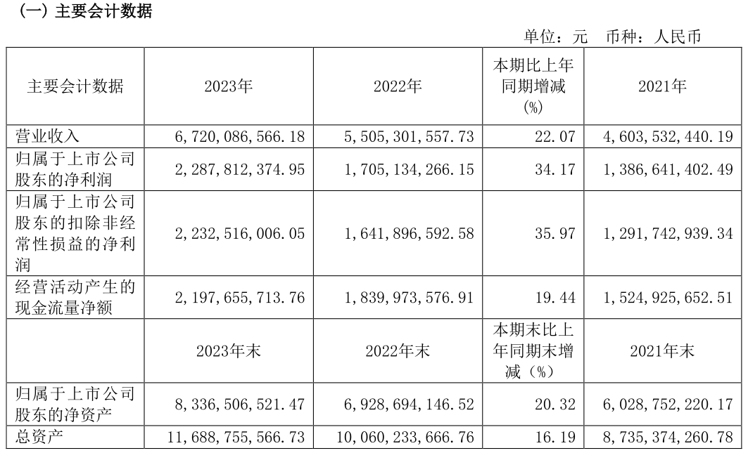 4月25日晚間,安徽省內銷量排名第二的迎駕貢酒發佈年度報告。數據顯示,2023年全年公司實現營業收入67.2億元,同比提升22.07%;歸屬於上市公司股東的淨利潤為22.88億元,同比提升34.17%;經營活動產生的現金流量淨額為21.98億元,同比提升19.44%。
