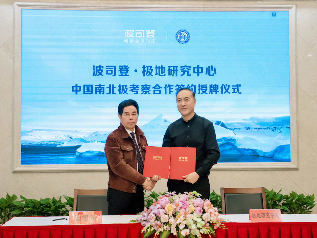4月25日,在極地科考40週年之際,波司登與極地研究中心舉行中國南北極考察合作簽約授牌儀式,雙方將通過深化戰略合作伙伴關係,匯聚雙方的優勢資源,強強聯合,共同打破實驗室研究與實地驗證之間壁壘,共同推動極地科研技術的創新與落地。