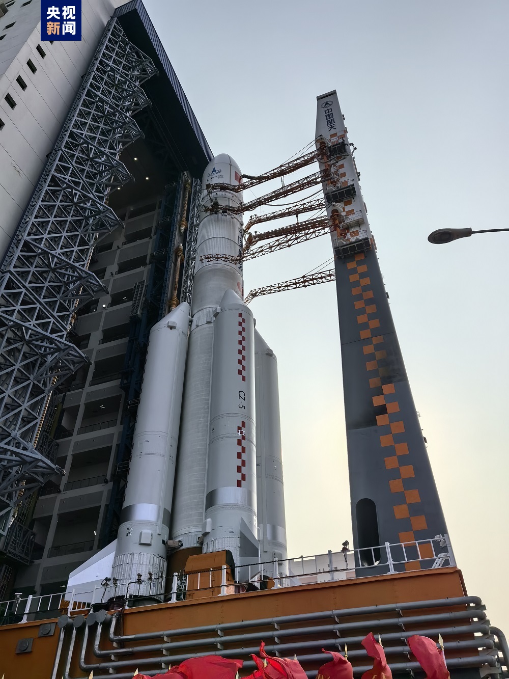 記者從國家航天局獲悉,4月27日,嫦娥六號探測器和長征五號遙八運載火箭在中國文昌航天發射場完成技術區相關工作後,器箭組合體垂直轉運至發射區,計劃5月初擇機實施發射。