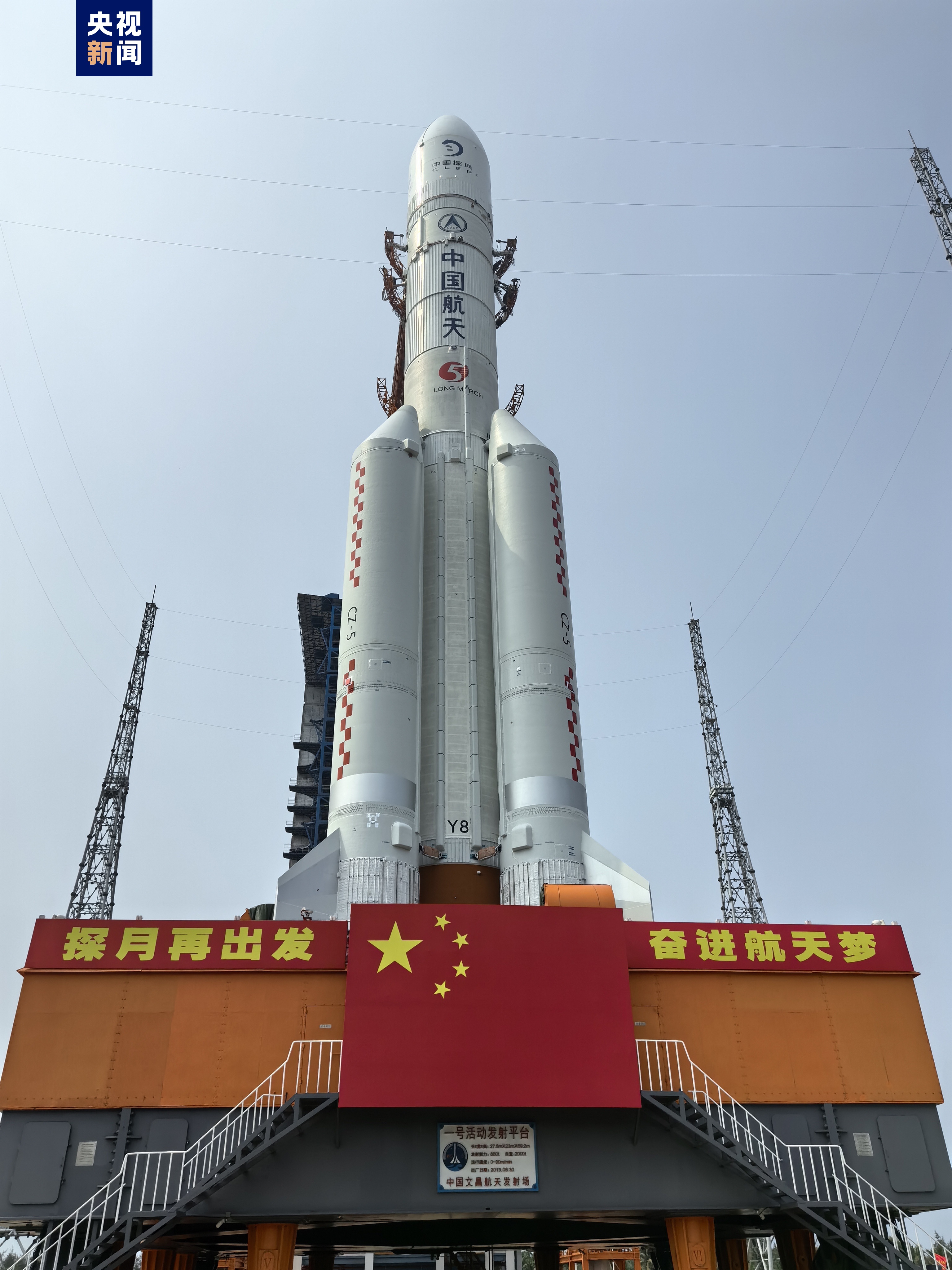 嫦娥六號探測器、長征五號遙八運載火箭分別於1月、3月運抵發射場後,陸續完成總裝、測試等各項準備工作。