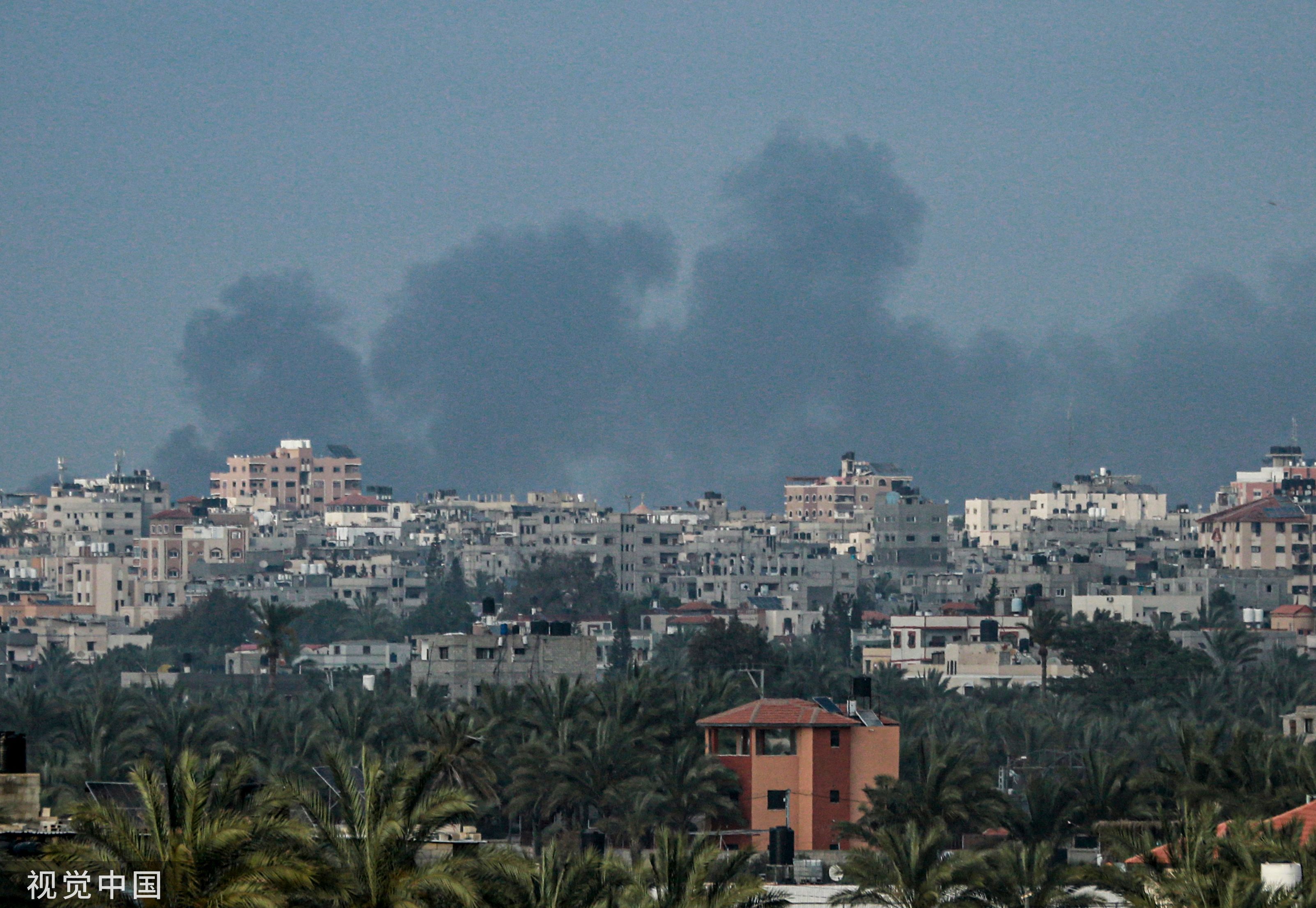 當地時間2024年4月27日,加沙地帶,以色列轟炸了努賽賴特難民營,濃煙滾滾。