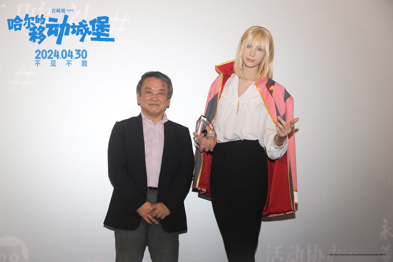 4月27日,宮崎駿五星佳作愛情電影《哈爾的移動城堡》在上海舉辦了千人首映禮,吉卜力執行董事西岡純一、特邀嘉賓卡琳娜出席。